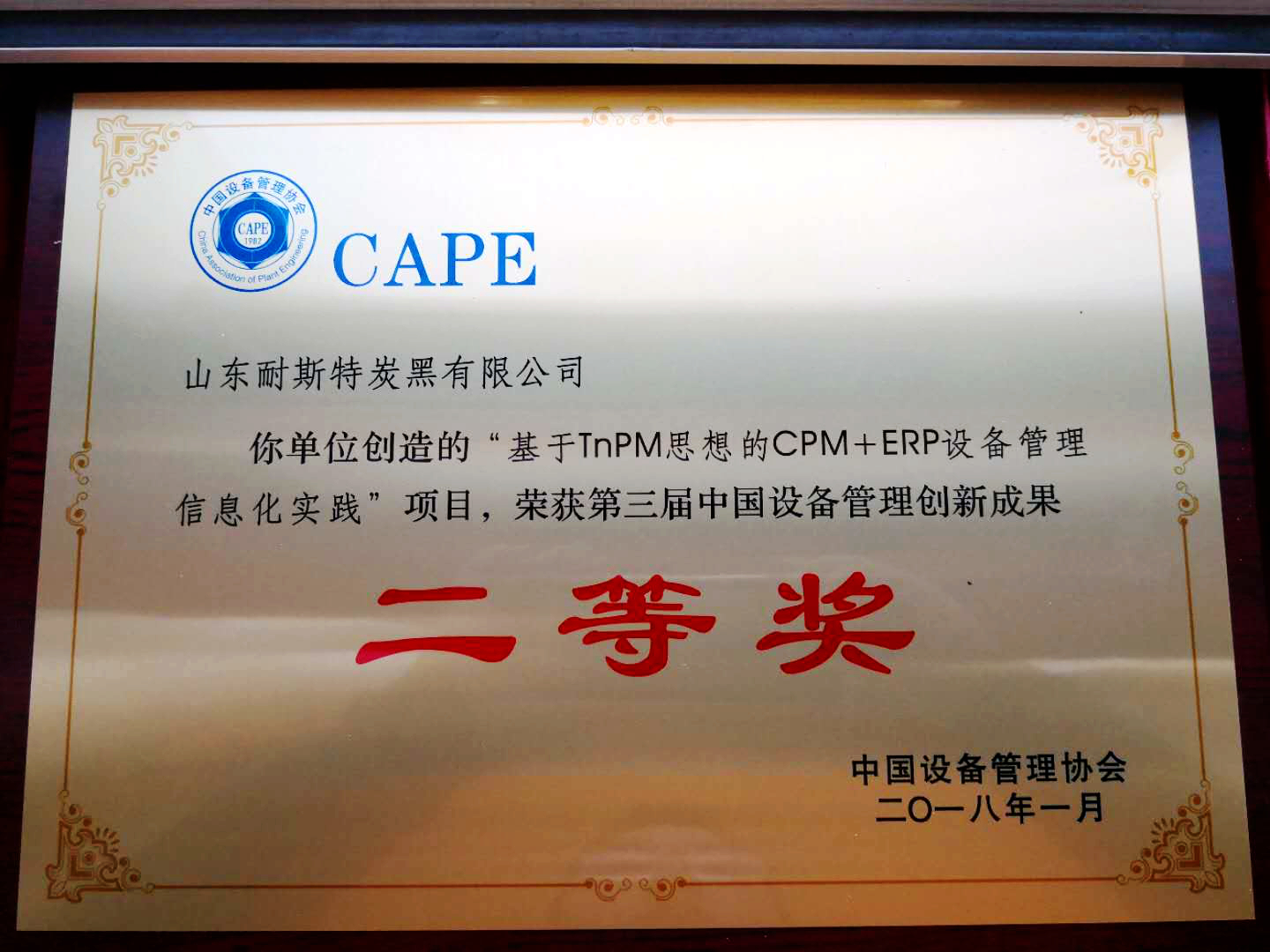 1月18日,第三屆中國設備管理創(chuàng)新成果交流大會在北京萬壽賓館隆重召開。會上,公布了第三屆中國設備管理創(chuàng)新成果獲獎項目名單、創(chuàng)新示范單位名單、創(chuàng)新領(lǐng)軍人物名單、創(chuàng)新杰出人物名單。耐斯特炭黑公司提報的“基于TnPM思想的CPM+ERP設備管理信息化實踐”項目榮膺第三屆中國設備管理創(chuàng)新成果二等獎。